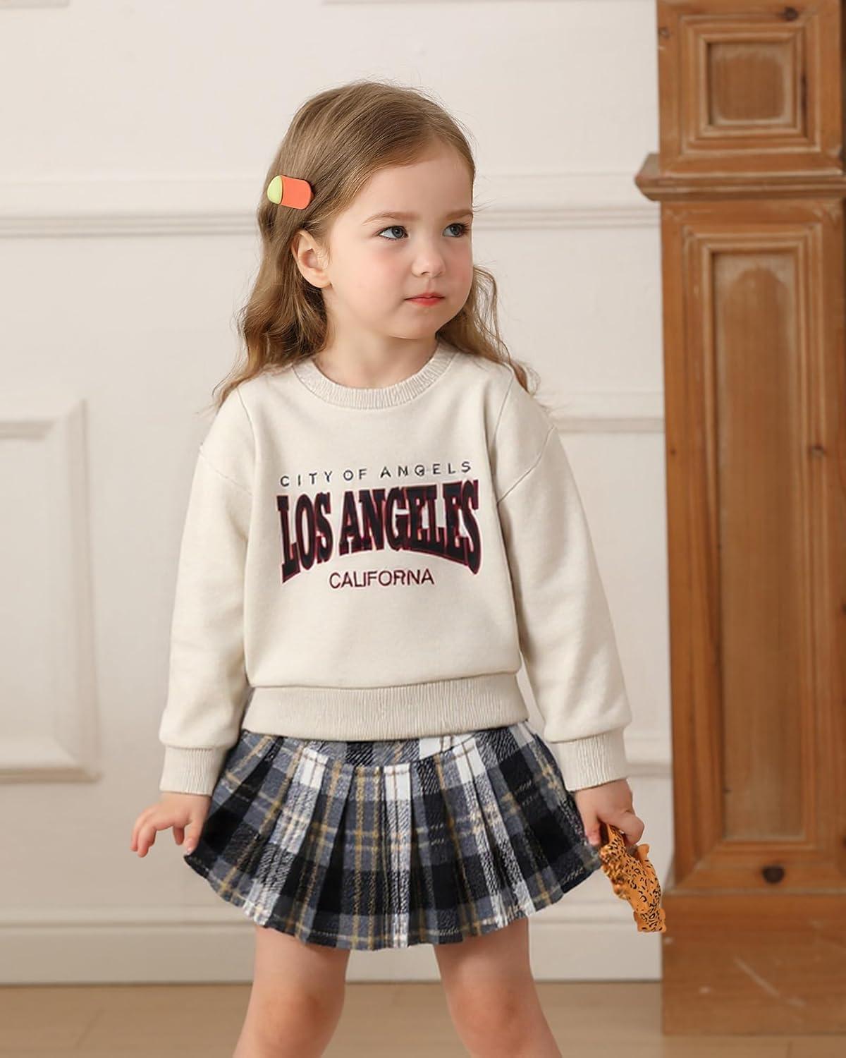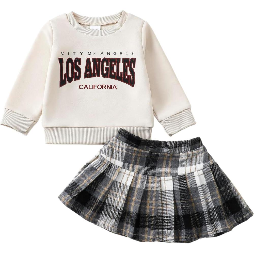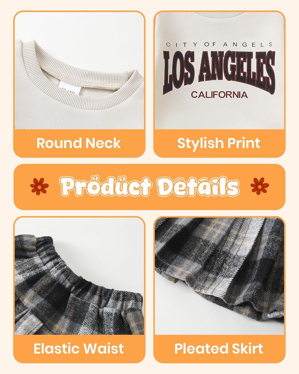 Kucnuzki Baby Girl Clothes Toddler Girl Fall Outfits Kids Winter Cute Long Sleeve T Shirt Top Plaid Mini Skirt Dress Set(Apricot)