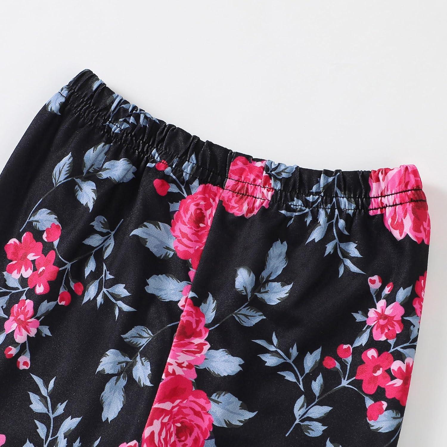 Kucnuzki Baby Girl Clothes Toddler Girl Outfit Ruffle Sleeve Shirt Floral Pant Set Fall Winter Clothing for Girl(Floral Pink-sl)