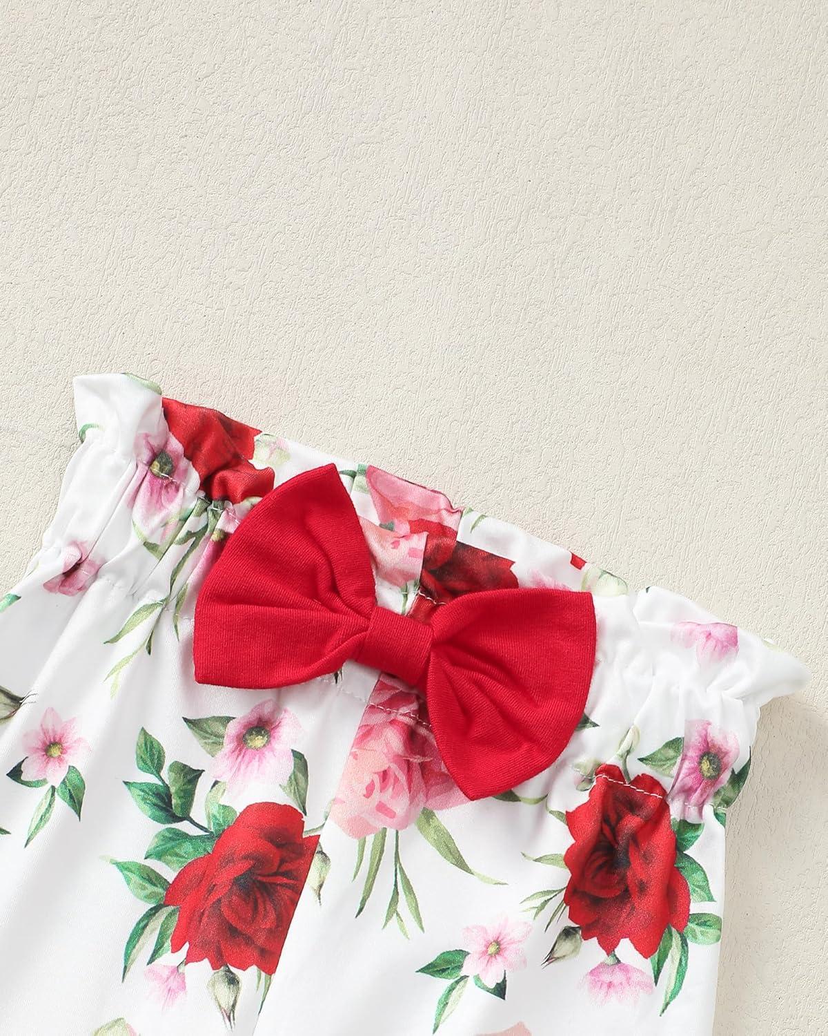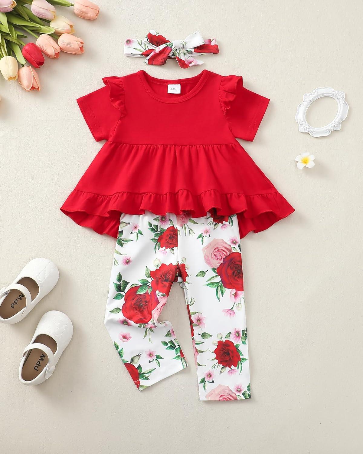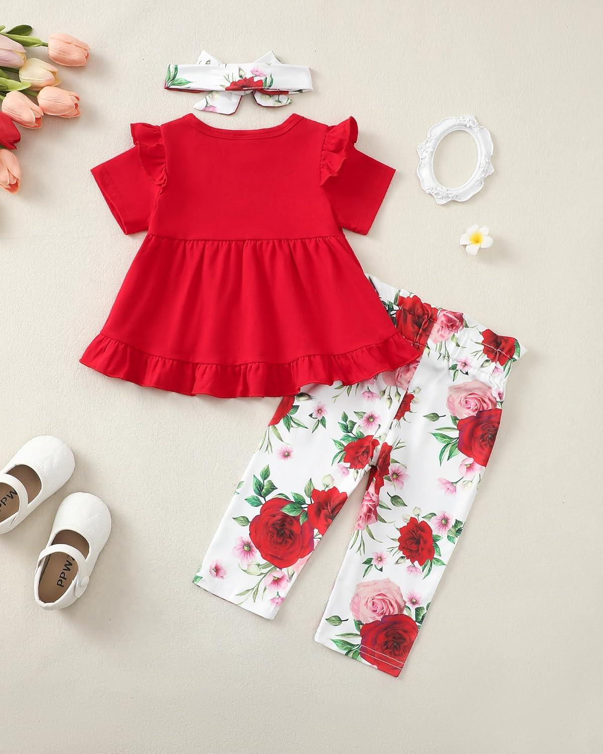 Kucnuzki Baby Girl Clothes Toddler Girl Outfit Ruffle Sleeve Shirt Floral Pant Set Fall Winter Clothing for Girl(Red-sl)