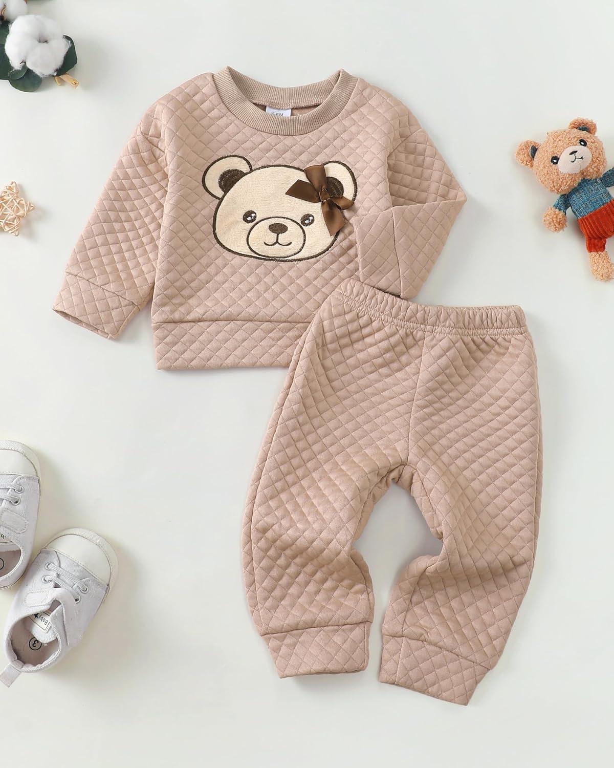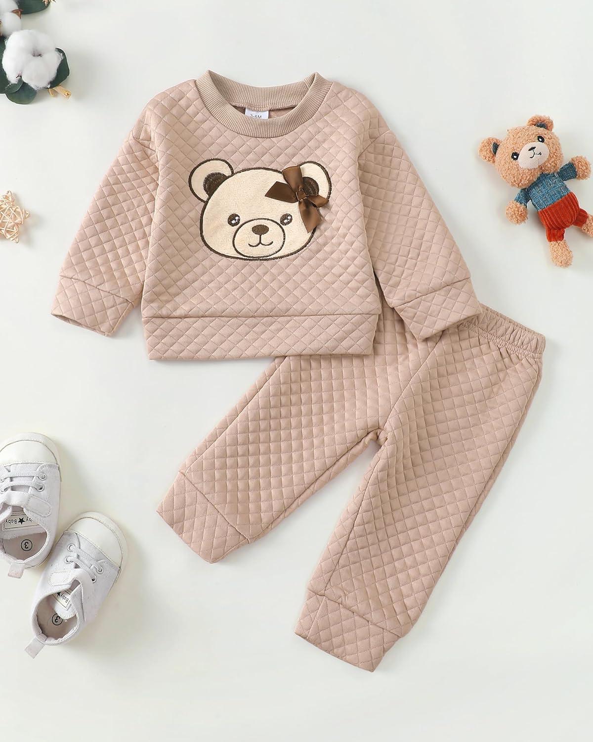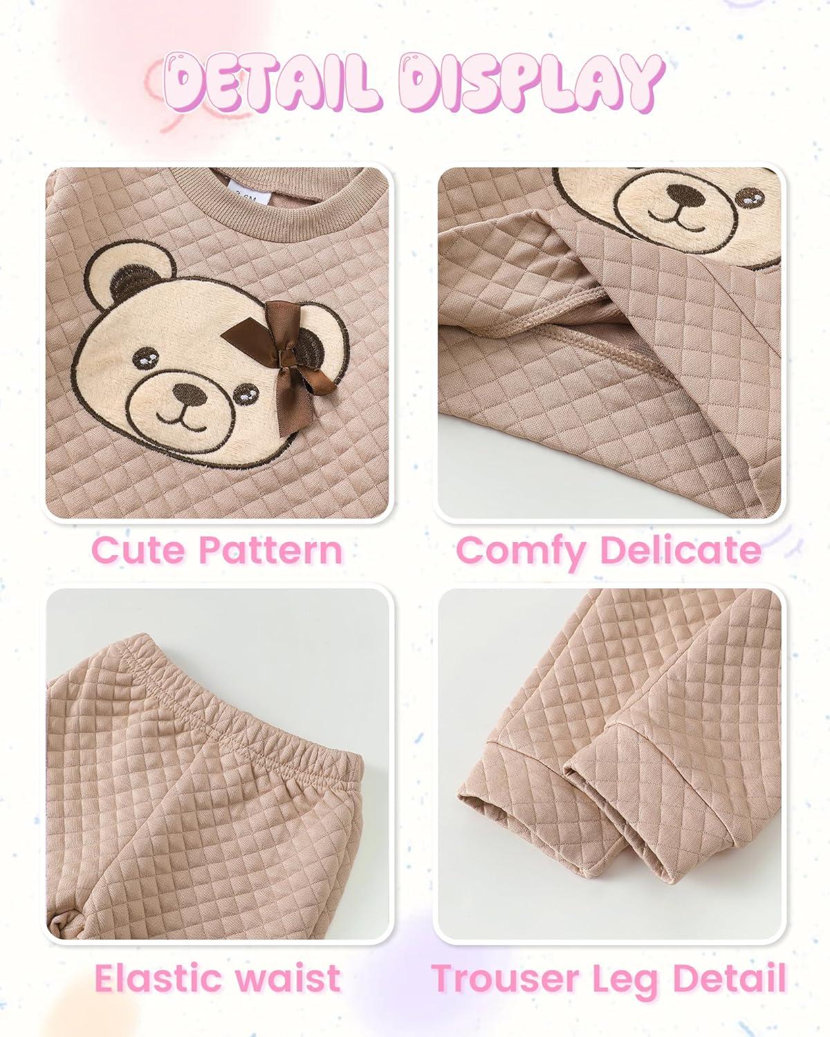 Kucnuzki Baby Toddler Girl Clothes Long Sleeve Crewneck Sweatshirt Tops Sweatpant Sweatsuit Baby Girl Fall Winter Outfit(Brown Bear)