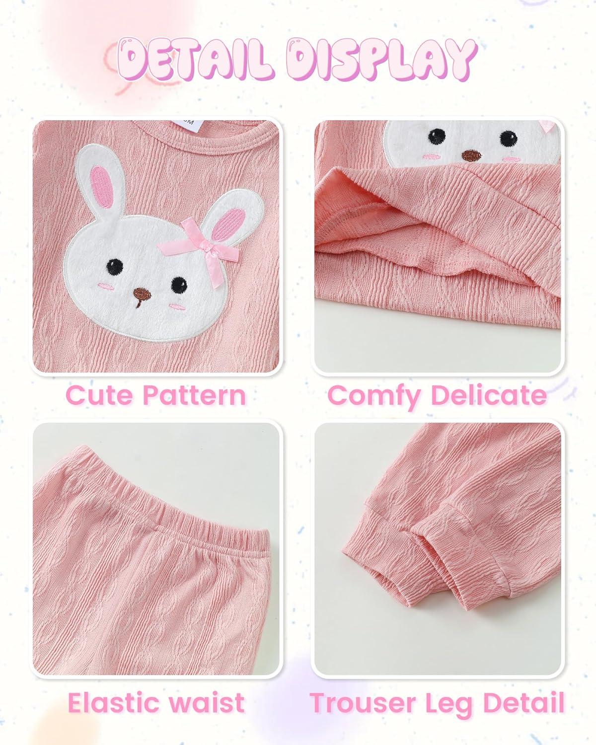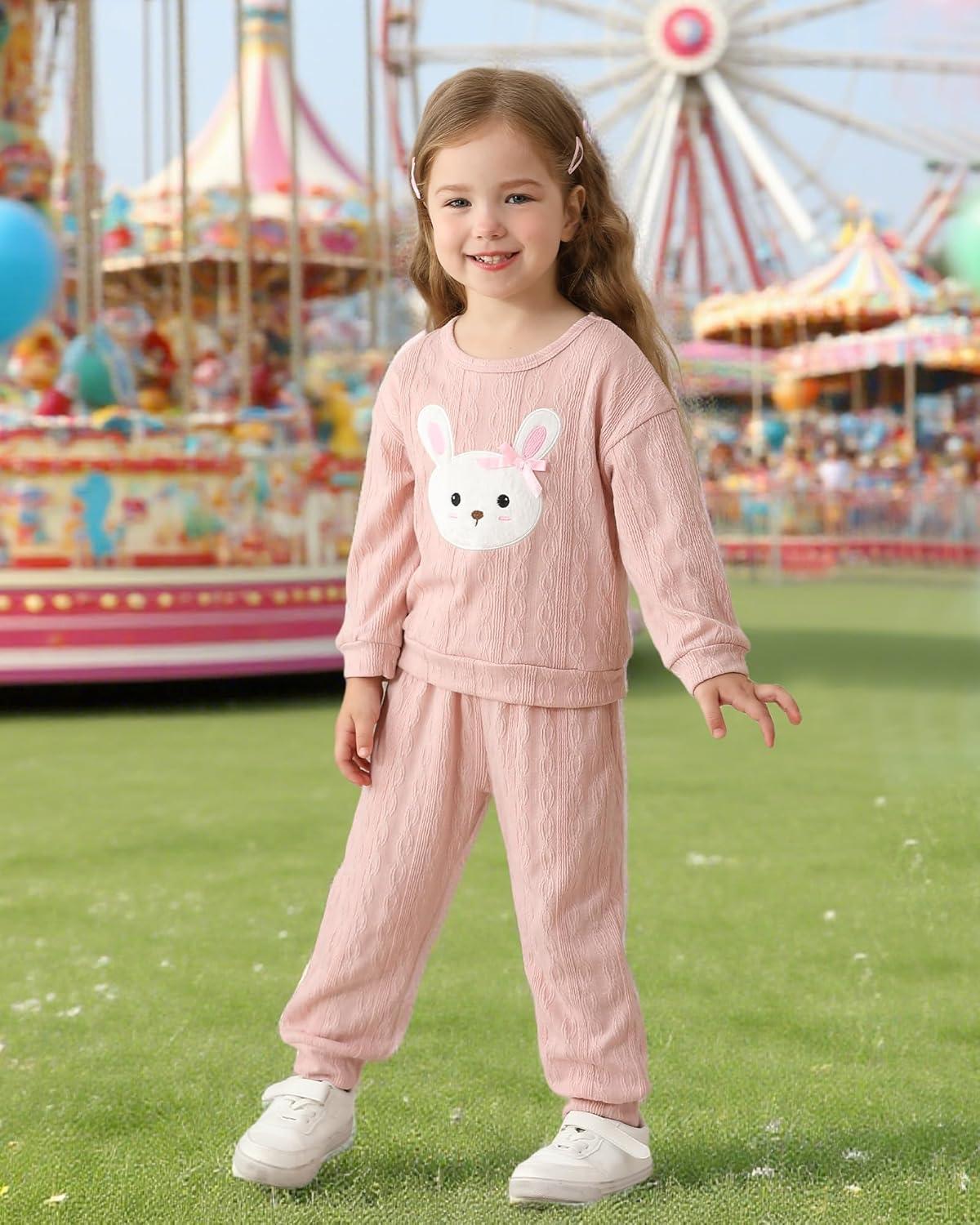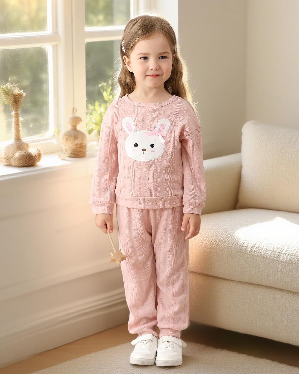 Kucnuzki Baby Toddler Girl Clothes Long Sleeve Crewneck Sweatshirt Tops Sweatpant Sweatsuit Baby Girl Fall Winter Outfit(Pink Rabbit)