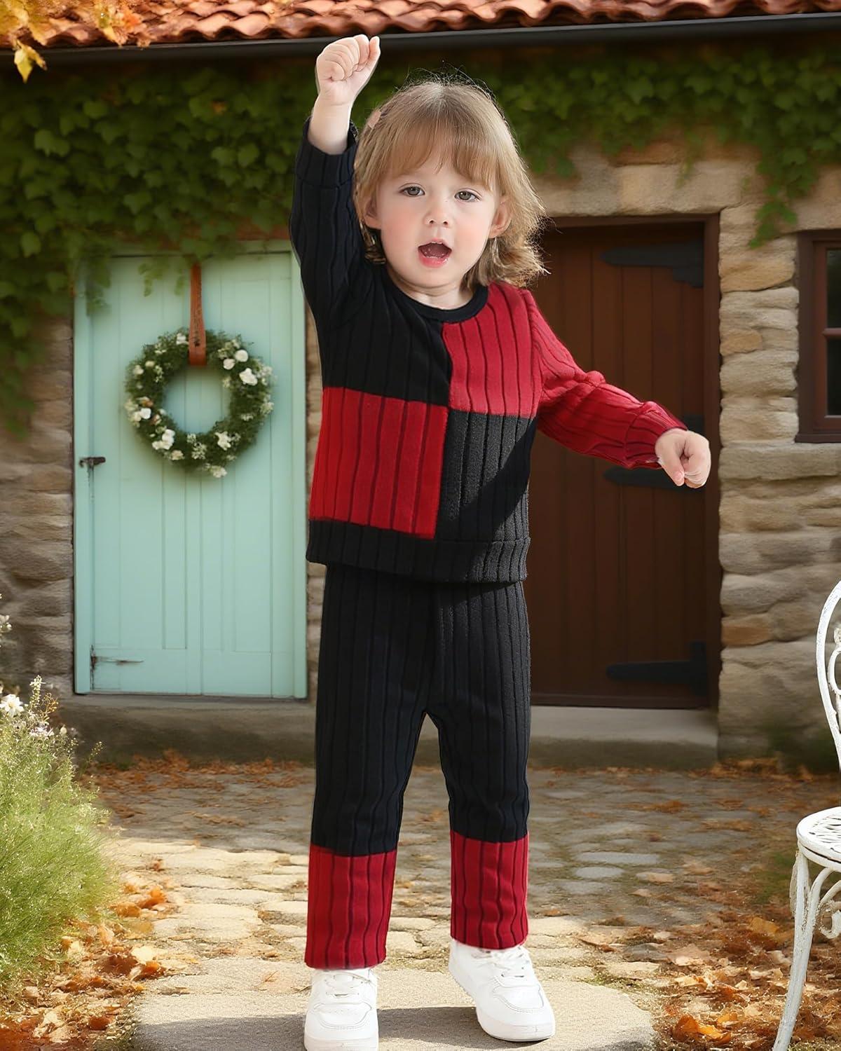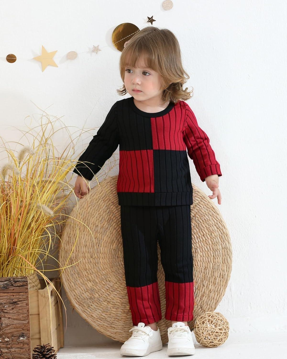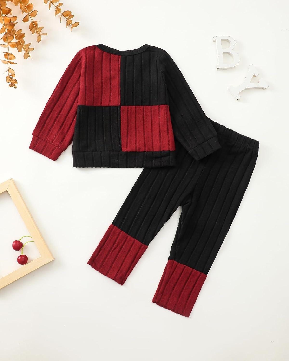Kucnuzki Toddler Baby Girl Clothe Long Sleeve Shirt Sweatshirt Leggings 2 Piece Kids Baby Girl Fall Outfit Winter Clothe(Black Red)