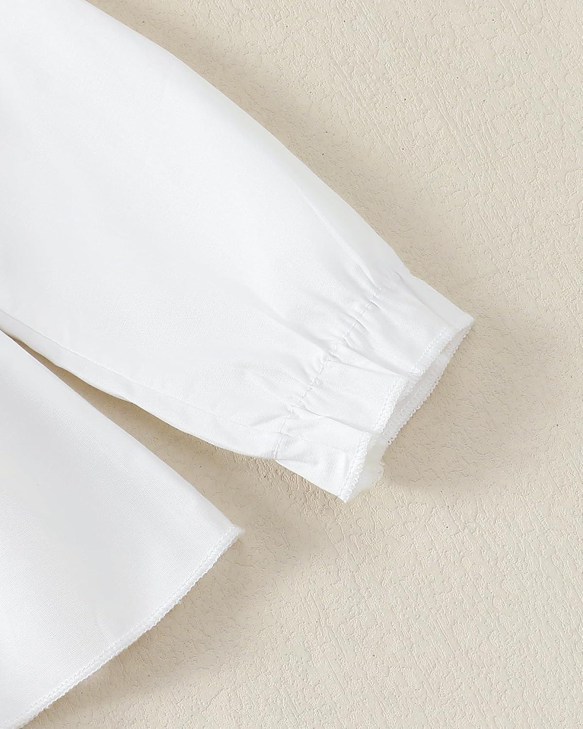 imageKucnuzki Toddler Baby Girl Clothes Outfit Long Sleeve Blouse Polo Shirt Top Flare Leggings Pants Two Piece Outfits SetKhaki Bow