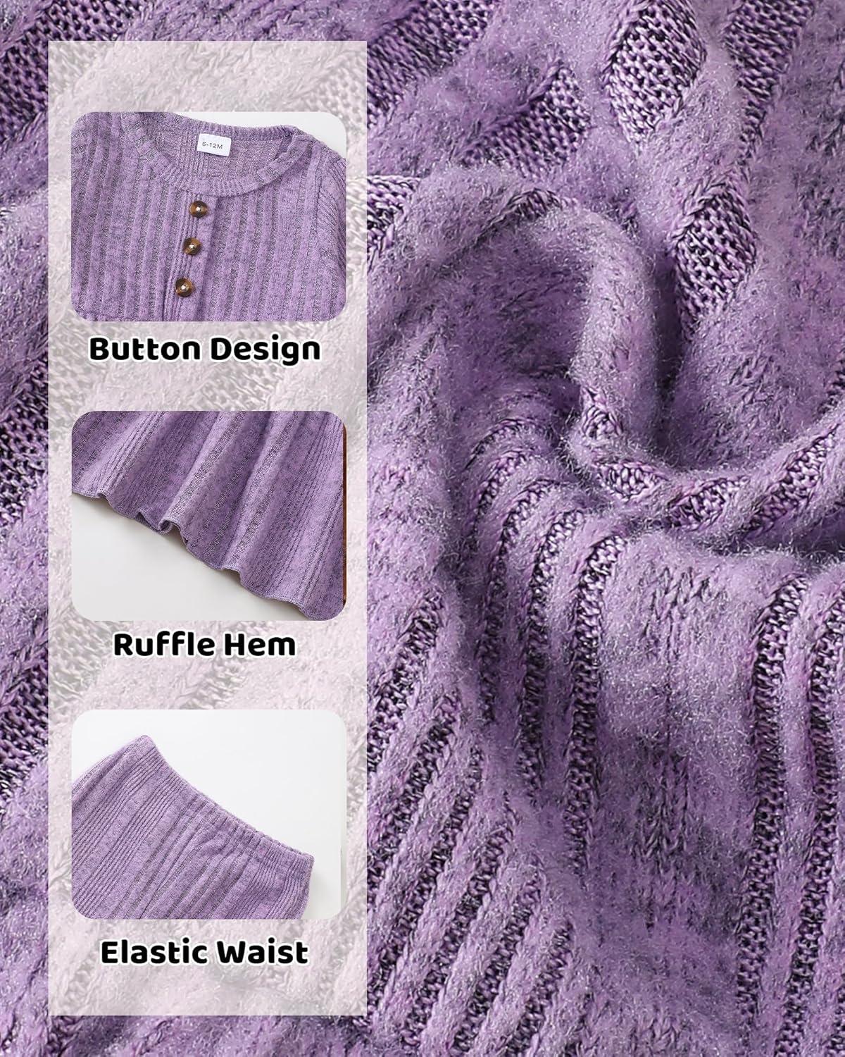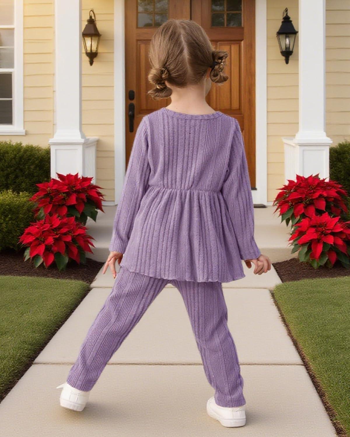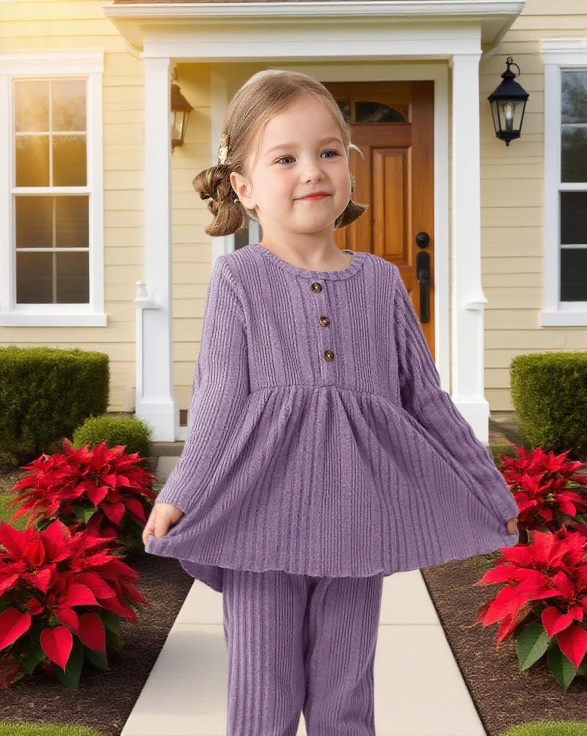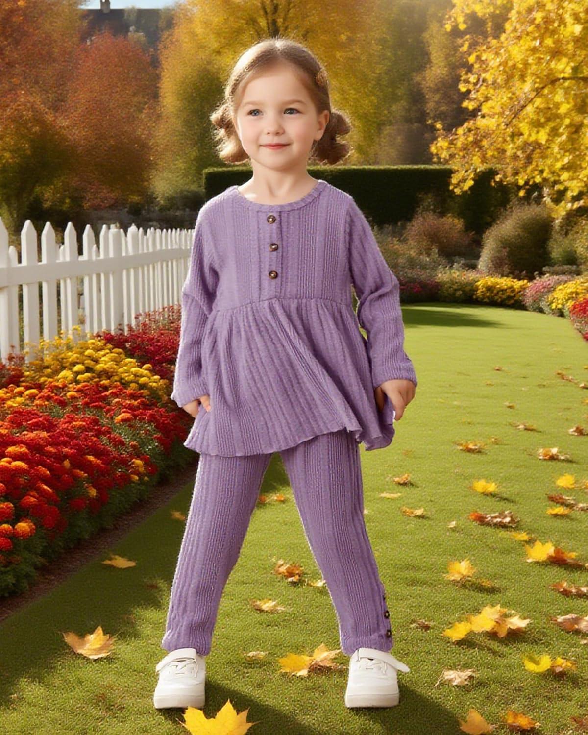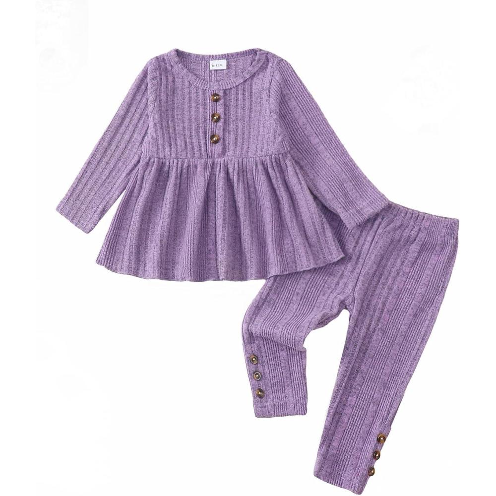 Kucnuzki Toddler Baby Girl Clothes Outfit Long Sleeve Plain T Shirt Top Baby Girl Pants Leggings Two Piece Outfits Set(Purple)